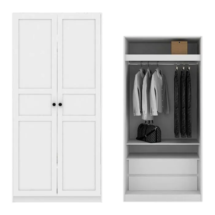 ตู้เสื้อผ้าบานเปิด OP-L ขนาด 100 ซม. รุ่น Blox สีขาว