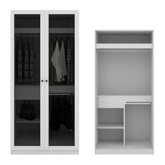 ตู้เสื้อผ้าบานเปิด OP-M ขนาด 100 ซม. รุ่น Blox สีขาว