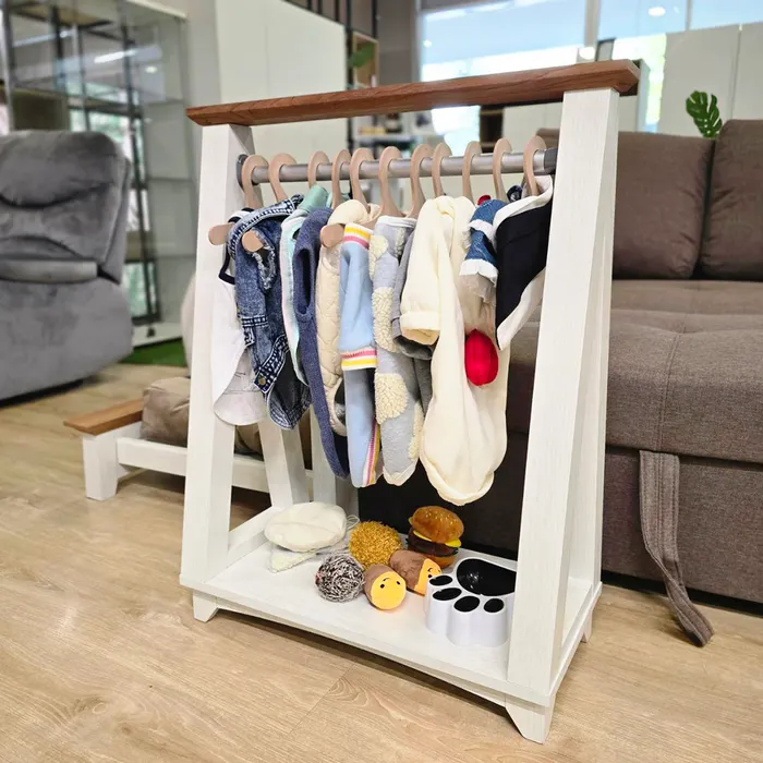 ชั้นราวแขวนสำหรับสัตว์เลี้ยง รุ่น GANSO สีขาว ขนาด กxยxส: 63X30X80.5 ซม. ช่วยให้จัดเก็บเสื้อผ้าสัตว์เลี้ยงได้อย่างเป็นระเบียบ ขนาดเล็กกระทัดรัดเคลื่อนย้ายได้สะดวก (ราคาสินค้าเฉพาะชั้นราวแขวน ไม่รวมไม้แขวน) ***สินค้าต้องประกอบเองก่อนใช้งาน พร้อมคู่มือการประกอบ