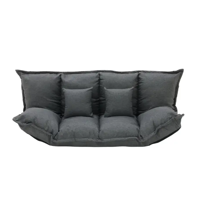 โซฟาปรับนอน รุ่น RIONA โครงสร้างทำจากไม้โอบฟองน้าปะใยสังเคราะห์หุ้มผ้าสีเทาดำ ด้านล่างตัวสินค้าปิดด้วยผ้าดำ พนักพิงและความสูงเท้าแขนสามารถปรับได้ 5 ระดับ ขนาดเมื่อปรับเป็นเบด 152X115X20 ซม. มาพร้อมกับหมอนอิงใยสังเคราะห์ หุ้มผ้าสปันบรอนด์ ด้านนอกหุ้มผ้าเทาอ่อน มีซิปเปิดได้