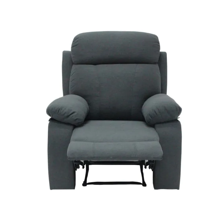 เก้าอี้พักผ่อน ขนาด 1 ที่นั่ง รุ่น COLETTE ขนาด 86x87x95 ซม. สไตล์โมเดิร์น โครงสร้างทำจากไม้โอบฟองน้ำปะใยสังเคราะห์หุ้มผ้าเทา ด้านข้างตัวสินค้าหันหน้าเข้า (ซ้ายมือ) มีที่ปรับเอนพิง เอนนอน ได้ถึง 3 ระดับ ตัวจับทำจากพลาสติกแข็งสีดำ